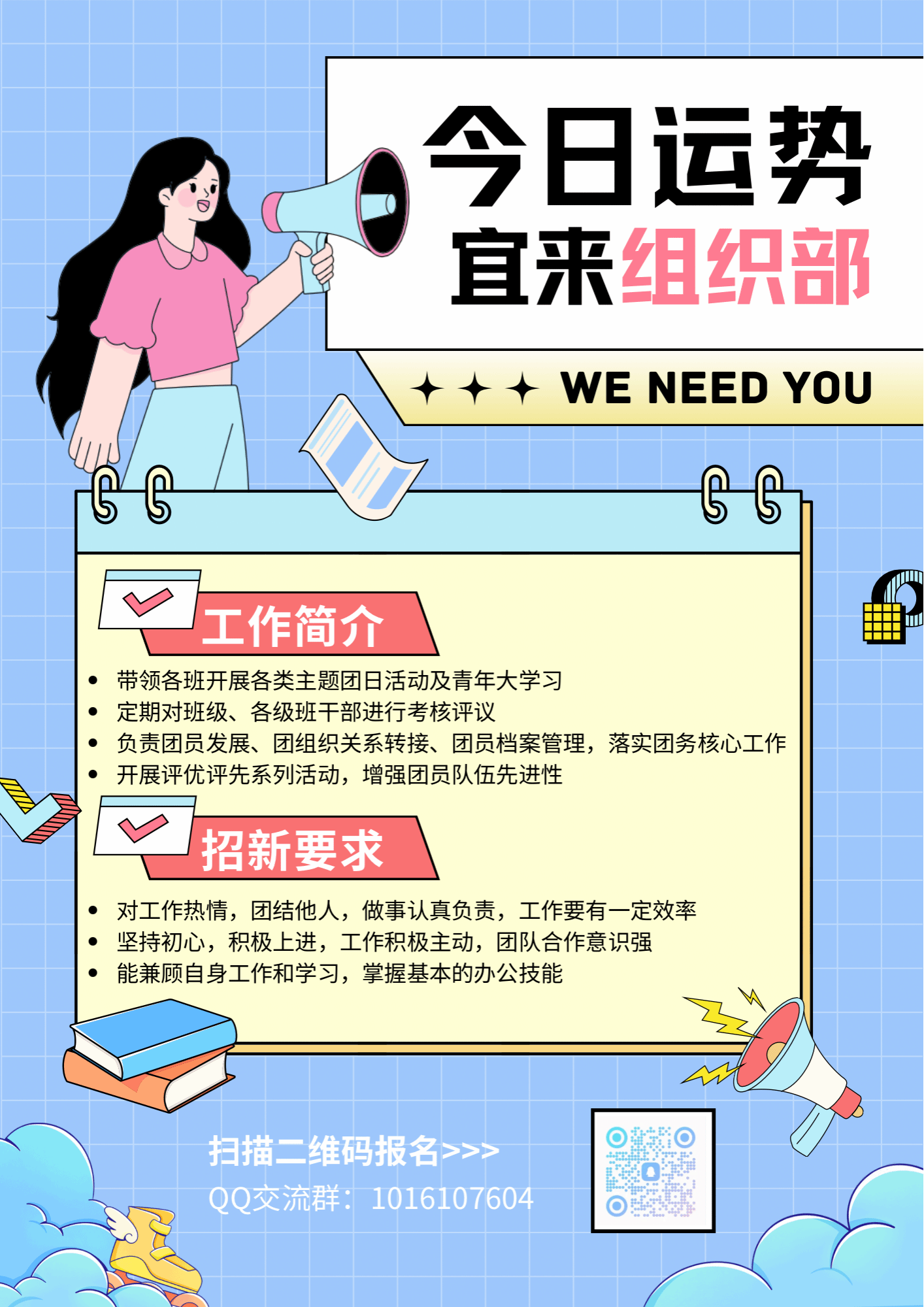 4、有良好的理解能力,可以准确传达相关通知信息