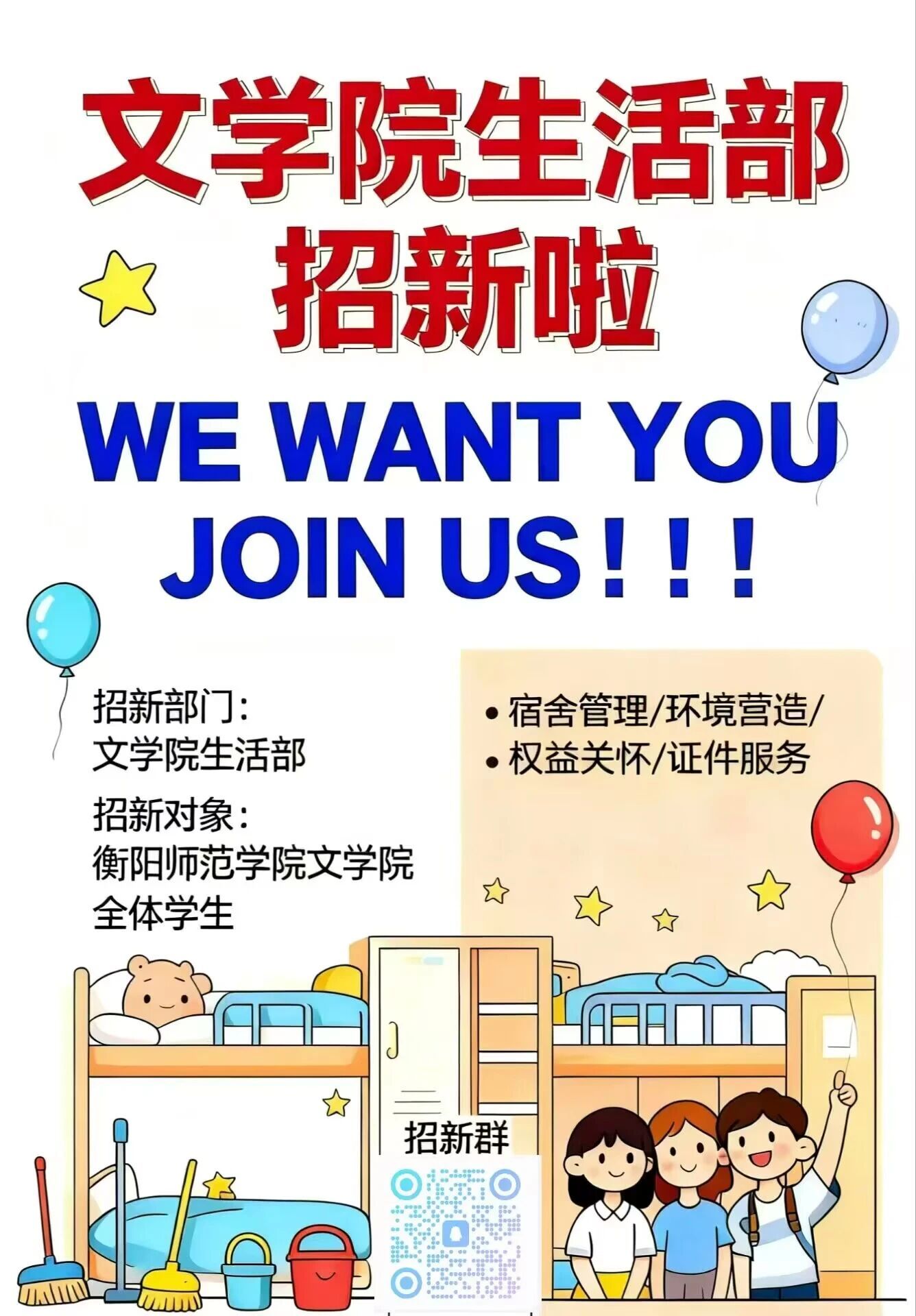 生活部隶属于yl34511线路中心员工会。生活部以服务同学为己任,是yl34511线路中心的“后勤保障部门”,是同学们快乐生活的坚强后盾,具体职责如下: