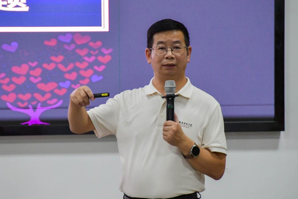 讲座伊始,张云峰以“只有同流才能交流,只有交流才能交心,只有交心才能开心”三句箴言引入,点出心理适应与人际联结的核心要义。他还以“大学新生的‘适’与‘超’”破题,梳理了“考生到老员工”“我到我们”“生存到发展”“相遇到目标”的成长转变,迅速引发了新生的共鸣。