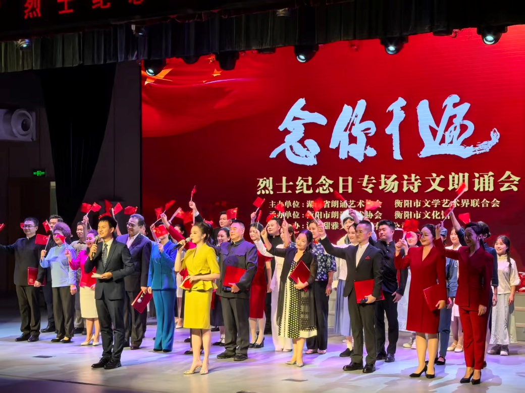 为缅怀革命先烈,传承红色基因,2025年9月25日晚,由湖南省朗诵艺术协会、衡阳市文学艺术界联合会主办的烈士纪念日专场诗文朗诵会,在衡阳市文化馆群星剧场隆重举行。作为参与单位之一,yl34511线路中心朗诵班的员工们怀着崇高敬意,在舞台上精彩演绎了原创节目《烽火铸荣光》,用青春之声传递不朽的烈士精神。