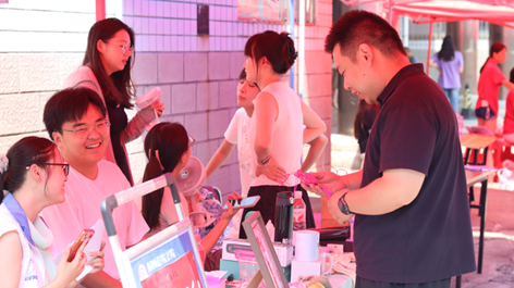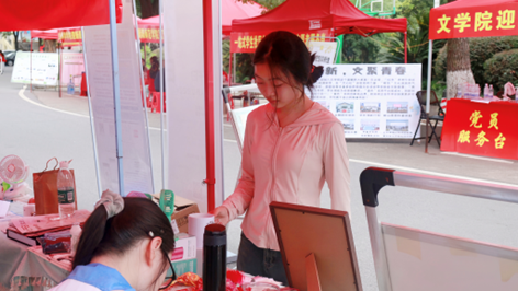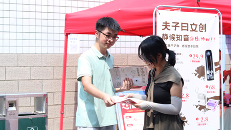 (青年学子进行文创售卖)