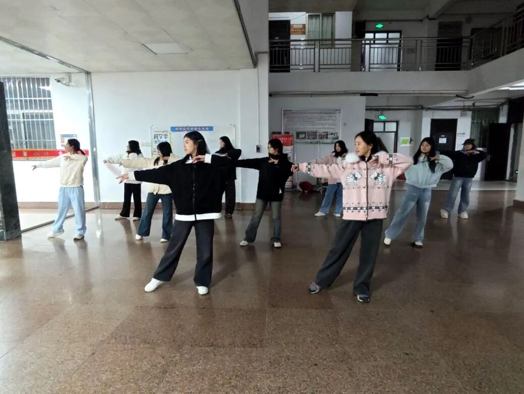 古典舞课堂的灯影里,充满了专注的气息,夜校小老师将一个个经典舞步拆解示范,同学们则屏息凝神跟着老师的节拍,从手势到步法,细细模仿。原本拘谨的动作渐渐化为行云流水般的柔美线条。结束课程时,众人齐舞《鸳鸯戏》选段,不仅是一招一式的配合,更是在一颦一笑的韵律中,共同走进了那段古典浪漫的意境,深切体会到了何为“身韵共情”。