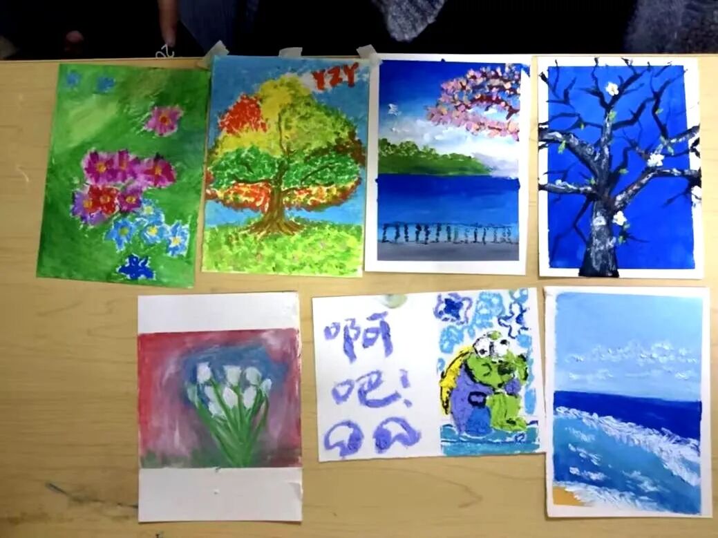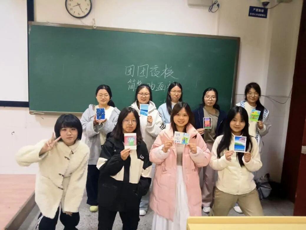 在色彩晕染的夜晚里,油画课堂不可缺席。油画课上,色彩饱满的颜料管,便携的画板与画笔,让油画卸下“高深艺术”的距离感,变得轻盈又亲切,小老师们带着同学们从基础的色彩堆叠,逐步过渡到细腻的配色技巧,将寻常风景晕染成画布上的斑斓色块,同学们专注执笔,在一笔一画里,慢慢触摸到生活里的治愈与诗意。