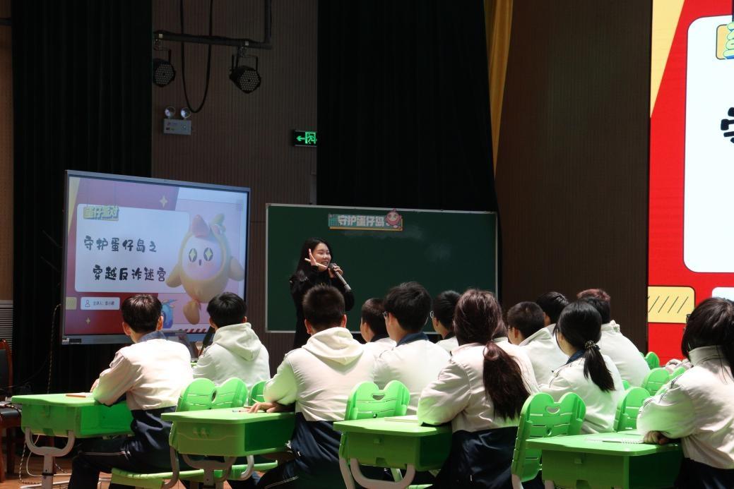 “蛋仔岛也有诈骗陷阱?”彭小颖老师的反诈骗班会别出心裁。结合中小学热门游戏《蛋仔派对》,课堂现场还原游戏相关诈骗案例——从“充值代练”的虚假承诺到“组队送皮肤”的诱导套路,一个个真实案例让大家直呼“原来游戏里也有风险”。彭老师以趣味形式拆解诈骗套路,传授识别技巧,让大家在熟悉的游戏场景中学会警惕,将反诈知识牢记心间,筑牢安全防线。