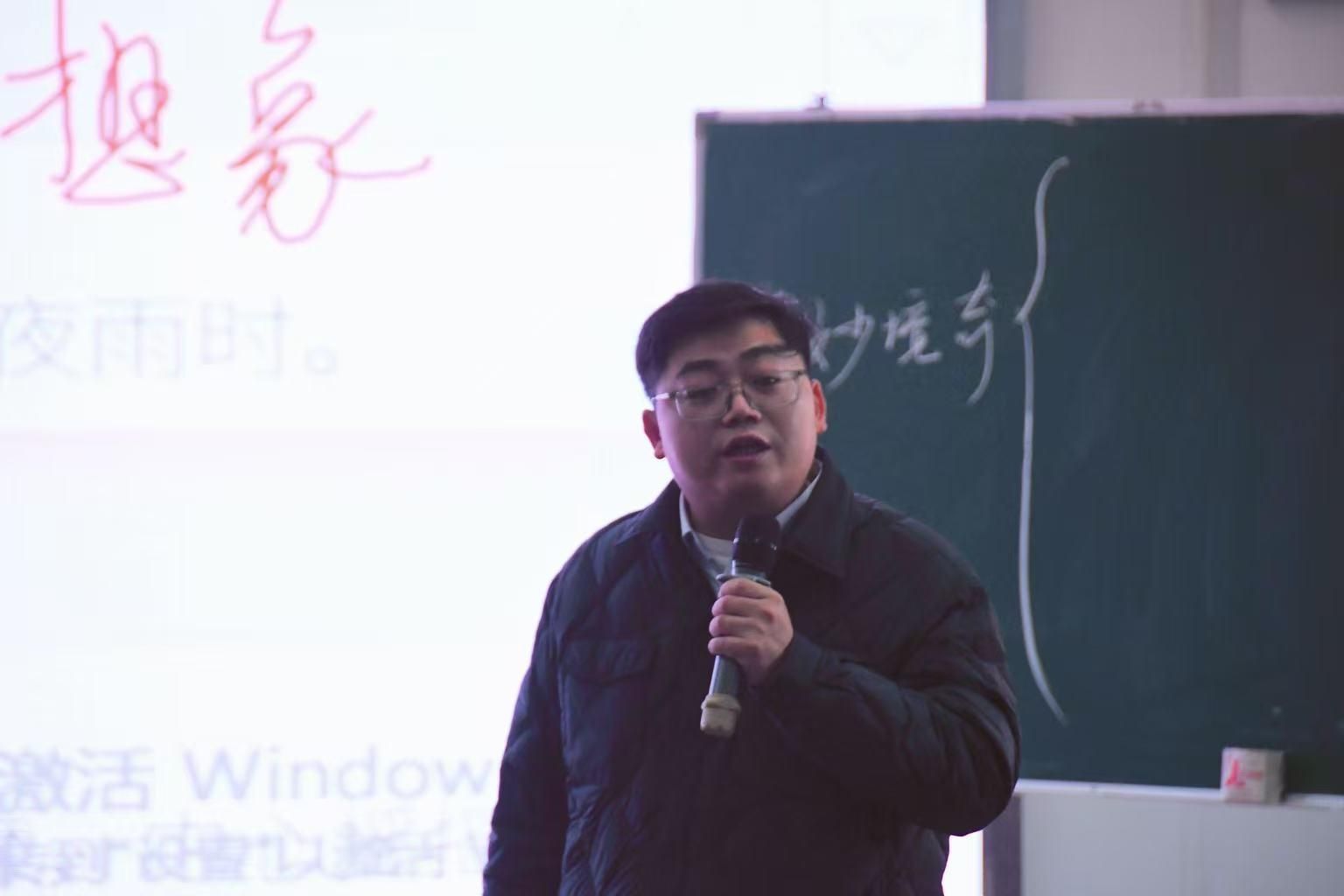 “庭下如积水空明,水中藻荇交横,盖竹柏影也。”张梨老师以“心守一抹暖阳,静待满园花开”为主题,带同学们聚焦《记承天寺夜游》中的“闲”字。课堂上,她带着同学们逐字解析文辞精妙,深究虚词用法,在“解衣欲睡,月色入户”的细节中,体会苏轼被贬后的从容心境。在这场诗歌的盛宴中,古典文学的韵味在字里行间静静流淌。