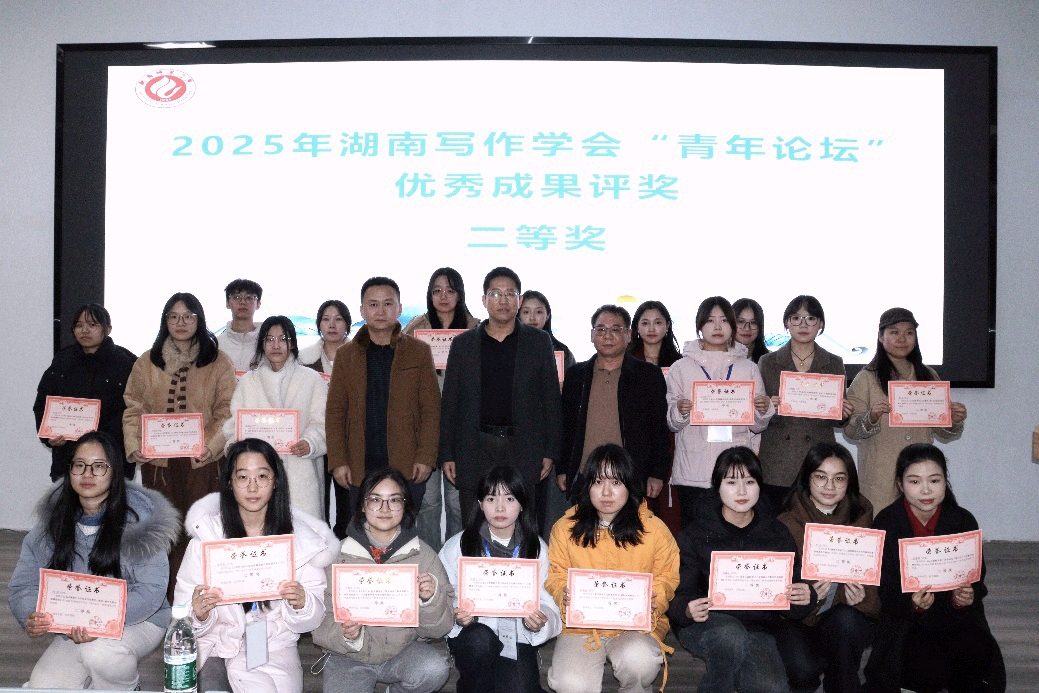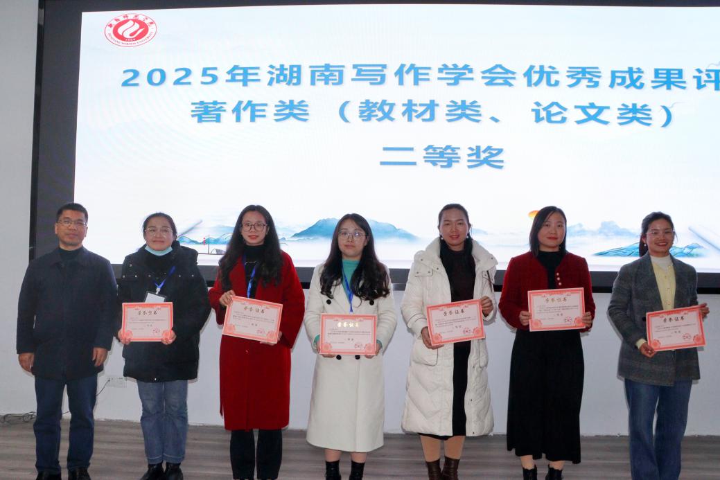 闭幕式上,湖南写作学会副会长晏选军和厉行威分别就教师和研究生的学术报告进行了总结,均肯定了代表们学术思考的前沿性、实践性和现实意义。其间,娄底一中附属星星中学的童丽芳老师通过连线形式远程参与,聚焦作文教学实践中的痛点,分享“写真事、说真话、动真情”的写作核心诀窍,为一线教育工作者提供实用指引。会长李作霖在闭幕辞中呼吁全省写作教育工作者主动顺应时代变革,共同推动写作教育事业的高质量发展。此外,会议还公布了年度评奖结果并举行颁奖仪式。