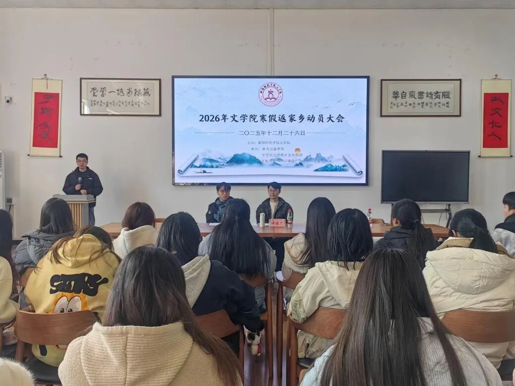 此次动员大会对“返家乡”活动做了详细的说明,鼓励文院学子立足专业之基,助力家乡建设。同学们纷纷表示会积极参与寒假“返家乡”活动,于实践之中增强社会责任感,有所学、有所悟、有所获,用专业的能力服务家乡人民,书写有担当、有温度的青春答卷。