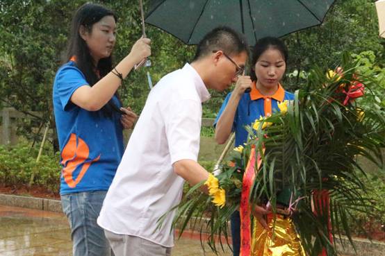 在参观完夏明翰故居之后,成员们冒着大雨前往明翰纪念广场。