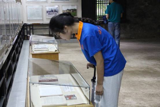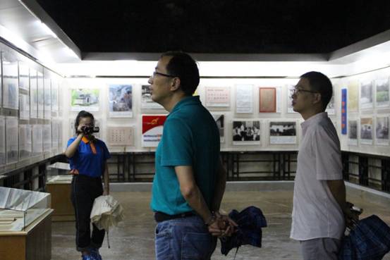 陈列馆内,大家正仔细阅读夏明翰各个时期的珍贵图片和历史文献资料。