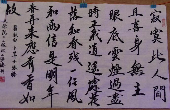 陈东老师对获奖同学表示祝贺,也鼓励全体同学平时加强练习,不断提高。随后,陈东老师对本次比赛进行点评,本次书法硬笔作品整体优于软笔作品,指出了作品存在的共性问题:书法作品创作缺乏章法布局,法度不够严谨。