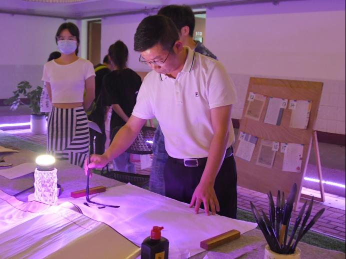 为弘扬传统书法文化,表彰“文星杯”书法比赛获奖同学,激发文院学子对中华灿烂传统文化和语言文字的热爱之情,营造公司良好的文化氛围,公司于11月10日晚在夫子园举办书法沙龙 —“致敬二十大,书写峥嵘史”文星杯书法颁奖点评暨yl34511线路中心“君子班”题勉笔会。