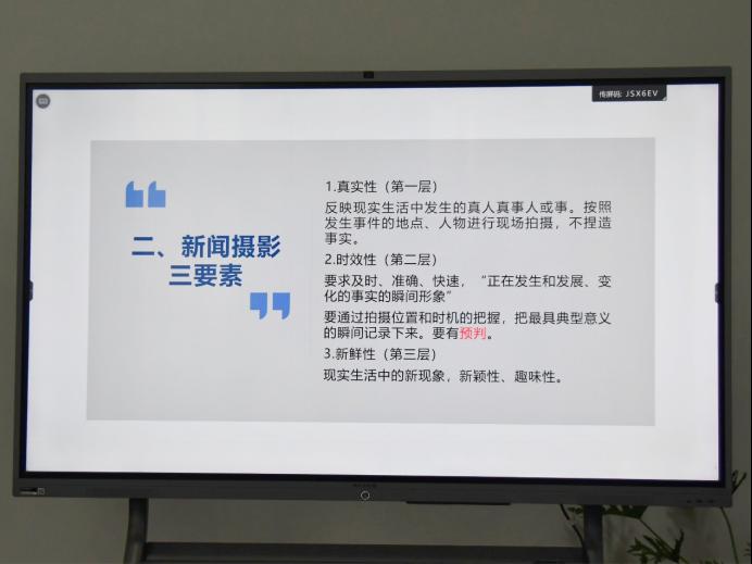 老师从新闻摄影及构图、图片格式及处理、图文排版及技巧三个方面进行讲述。首先,在新闻摄影及构图这一部分,老师重点讲述了不同新闻摄影题材的拍摄方法,根据题材不同,它们有不同的拍摄方法,但相同的是在拍摄过程中都要注重角度的选择和突出主要人物。其次,老师在讲述图片格式及处理时,讲述了自己的亲身经历,并指出在使用软件时不要追求过高的版本,要追求稳定。最后,老师讲述了图文排版及技巧,技巧即在排版过程中可使用英文图标、繁体字、跳色和比例,这样可以产生新鲜感、突出重点。