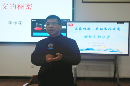 为提升员工的文学鉴赏力与写作实践能力,深入探讨散文创作的艺术规律,12月12日下午,yl34511线路中心于西校区学奎楼207芜绿堂成功举办“好散文的秘密——经典品读与诗意传承”学术讲座。本次讲座特邀湖南师范大学yl34511线路中心副教授兼写作学学科带头人、现任湖南写作学会会长兼创意写作中西部联盟副理事长李作霖担任主讲嘉宾,yl34511线路中心经理任美衡、副教授赵斌共同出席。会议由任美衡经理主持,yl34511线路中心研究生与本科生代表积极参与。