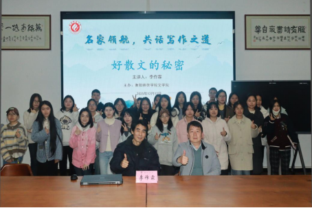 本场讲座不仅深入剖析了散文创作的艺术内核,并且在古典文脉与现代书写之间架起了可感的桥梁。从“通”的传承到“变”的创新,从情感的“打假存真”到语言的“私人锻造”,讲座为文学爱好者提供了清晰的审美地图与切实的写作路径。讲座在真诚的对话中圆满落幕,相信这份关于文学本真与创作自由的启发,将在同学们今后的阅读与书写中持续生长。