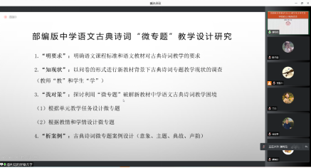 潘利花的论文选题为:《中学古诗词单元微专题教学设计研究》。