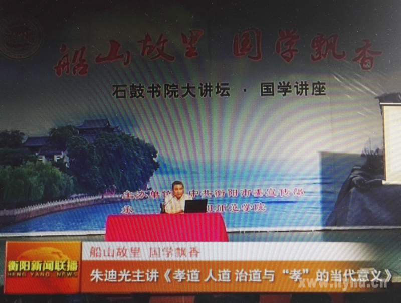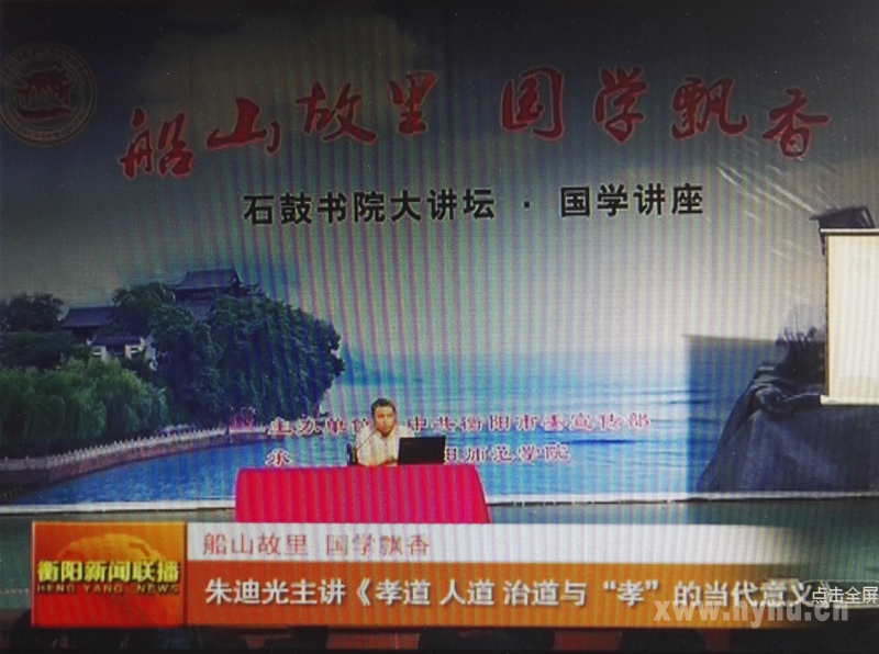 今天上午,“船山故里 国学飘香”石鼓书院大讲坛?国学讲座第95讲在衡阳师院音乐厅举行。衡阳师院朱迪光教授主讲《孝道、人道、治道与“孝”的当代意义》。